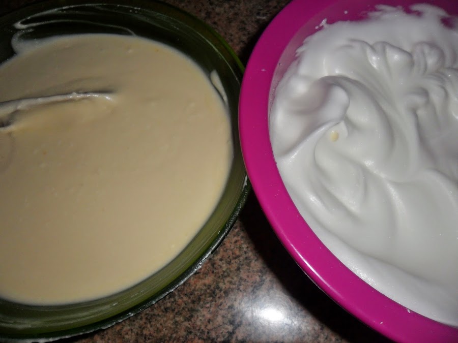 Agregar las claras a punto de nieve reservadas con una espátula con cuidado no se bajen.Reservar.