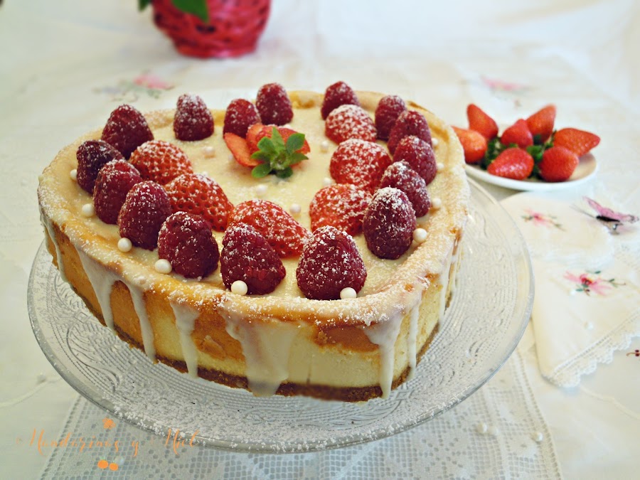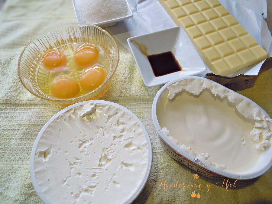 Y como no hay cumpleaños sin celebración y sin tarta, lo celebro con todos vosotros y con esta riquísima tarta de queso con chocolate blanco.