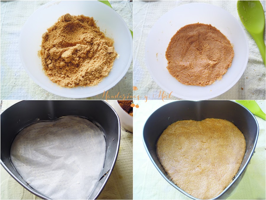 Como ya tenía la idea de hacer una tarta, me vino genial hacerla con el queso crema porque las tartas de queso nos encantan en casa; y como quería hacerla diferente de las que suelo hacer, he seguido la receta de Cristina de Un pedacito de cielo, aunque he cambiado alguna pequeña cosa.