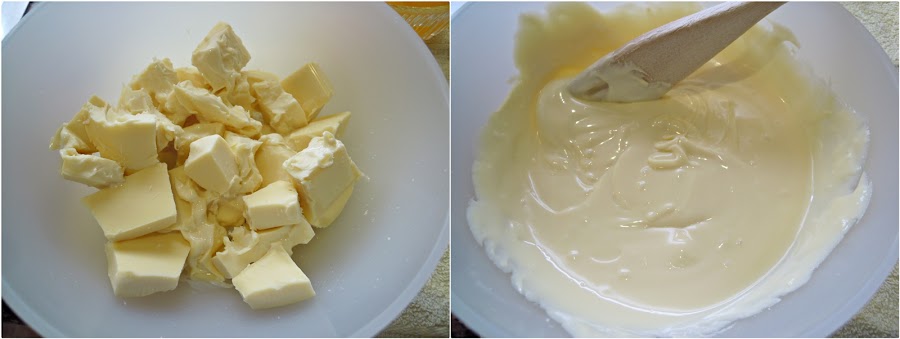 Funde el chocolate blanco en el microondas, poco a poco y reserva.