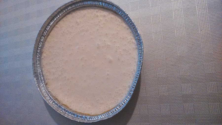 En un recipiente hondo ponemos el resto de los ingredientes, excepto el chocolate negro y batimos bien, si puede ser con las varillas eléctricas. Vertemos la mezcla que hemos conseguido sobre la base de galletas y reservamos.