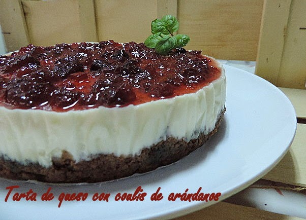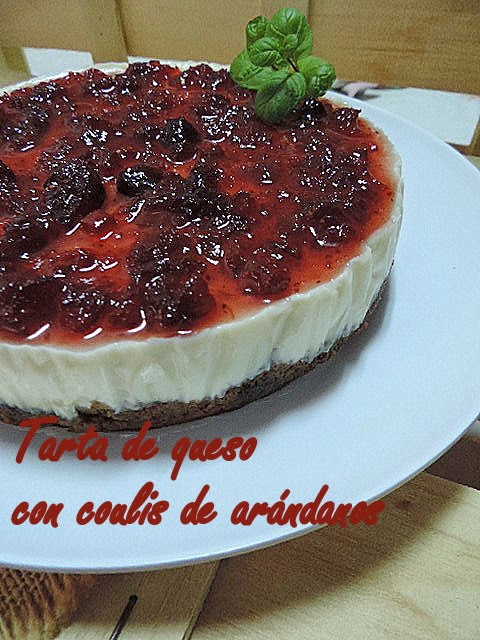 Claro está, que hoy le hemos dado un toque especial cambiando la mermelada de arándanos comercial,que es como suelo presentar la mayoría de veces esta tarta de queso por un coulis casero que hemos preparado para esta ocasión.