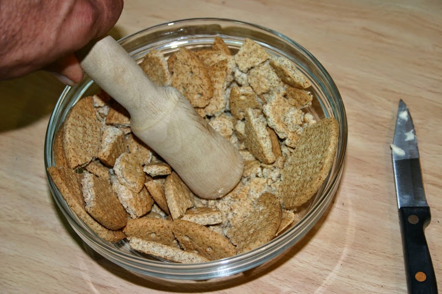 y las machacamos con el mortero hasta que queden bien machacadas, reservamos