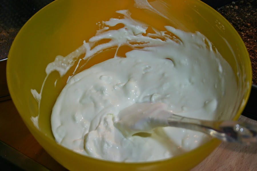 hasta formar una capa homogenea. lo guardamos en la nevera y vamos a preparar el relleno