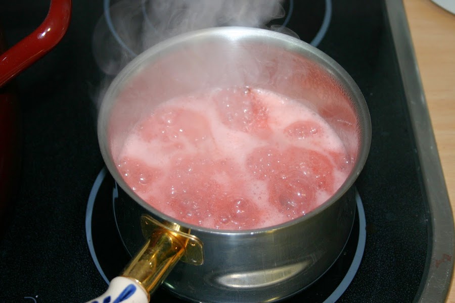 cuando ya este listo, echamos la mezcla en un cuenco colandola para que no caigan los trozos de fresa y la reservamos en la nevera hasta la hora de servirla