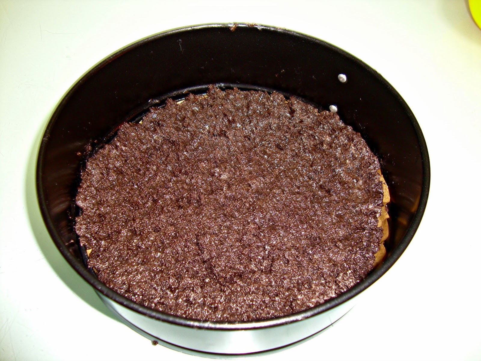Esta tarta es una sucesión de capas de galletas tipo Oreo picadas y tarta de queso de diversos sabores pero yo al llegar a la segunda capa ya no me cabía en el molde y decidí hacer la otra capa en otro molde mas pequeño.