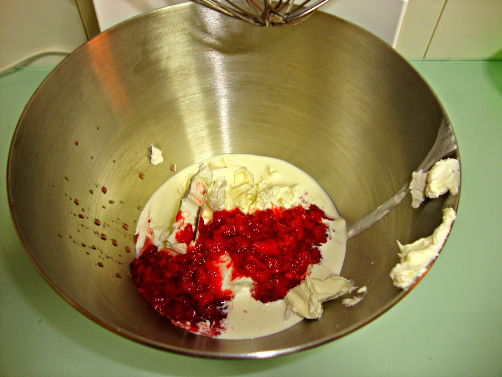 Hacemos la otra capa de queso de sabor frambuesa y la echamos por encima y volvemos a meter en la nevera un mínimo de 3 horas.