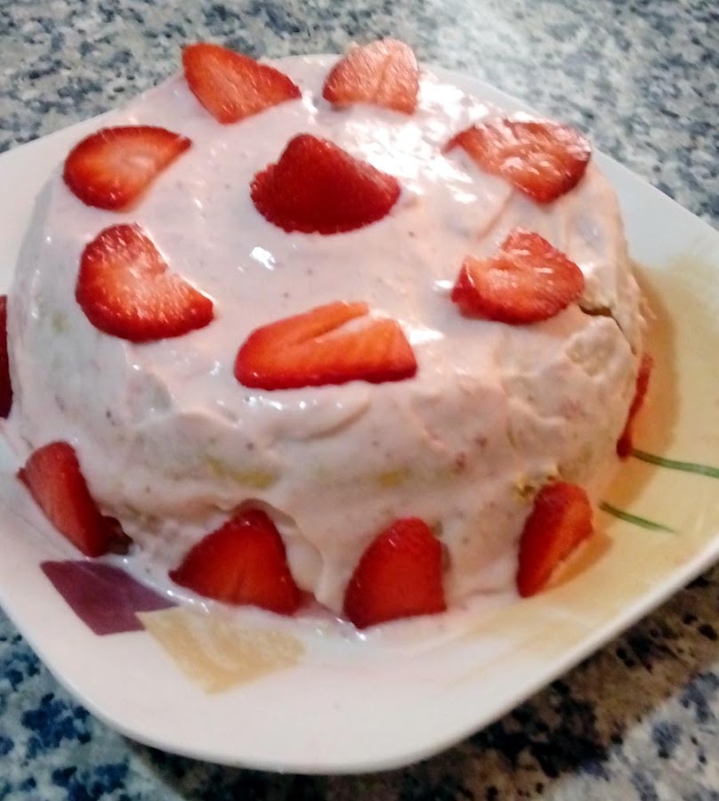 Luego se cubre por fuera y se adorna con unas fresas cortadas.