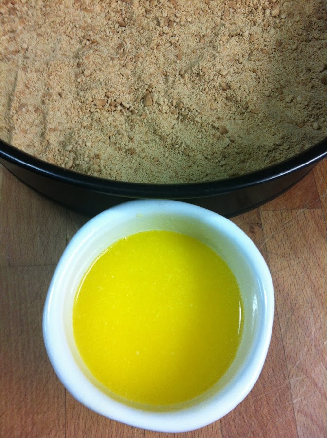 Se ponen encima del molde a utilizar. Se calienta la mantequilla en el microondas hasta que se derrita y se vierte por encima de las galletas.