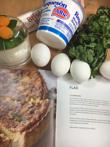 También he cambiado el queso fresco de cabra u oveja por requesón o ricotta. Así pues, es mi interpretación del riquísimo flaó.