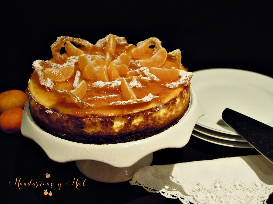Parece mentira pero la verdad es que tarta de queso con naranjas no tenía ninguna, así que me pareció una idea genial.....bueno, cambié las naranjas por mandarinas.