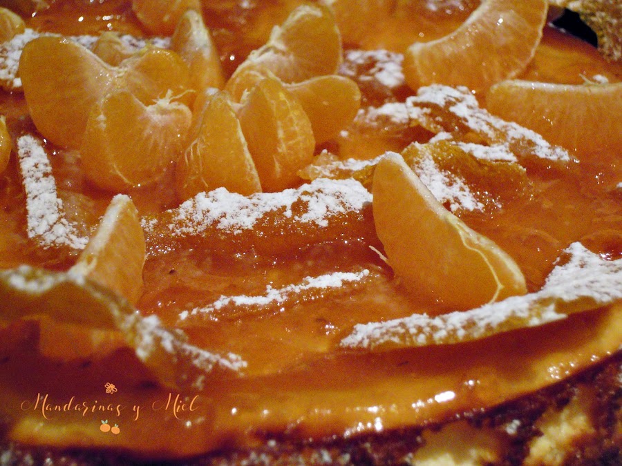 Adorna con virutas de mandarina caramelizada o simplemente con unos gajos de mandarina.