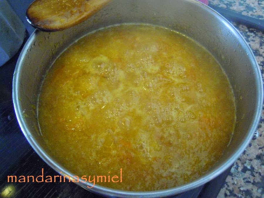 La mermelada la hice el mismo día que preparé el licor con la carne de las mandarinas, para aprovecharlas. Aquí puedes ver como hacer mermelada de naranjas o mandarinas...