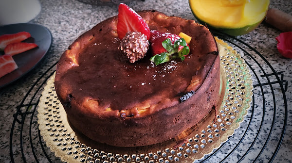 ¿Quién puede decir no a una tarta de queso? Y mucho menos cuando se convierte en una tarta de queso con mango y chocolate. Al menos yo no.