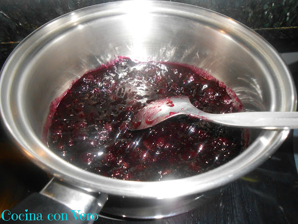 6/ Para la cobertura de la tarta utilizamos el bote de mermelada de arándanos.