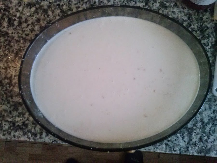 nata (crema de leche) con el queso y el azúcar a calentar.En un plato con