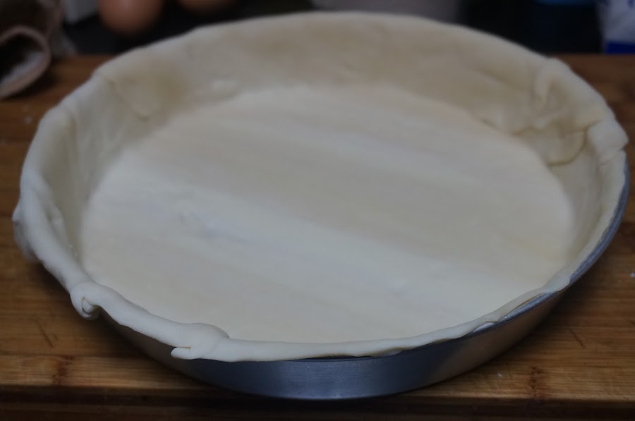 En un molde untamos un poco de mantequilla y ponemos la masa brisa, si el molde es desmontable mejor.