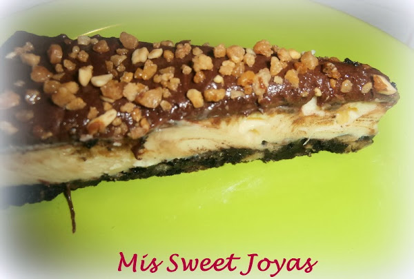 7. Una vez unido todo, lo vertemos por encima de la tarta, lo dejamos enfriar y después lo metemos al frigo.