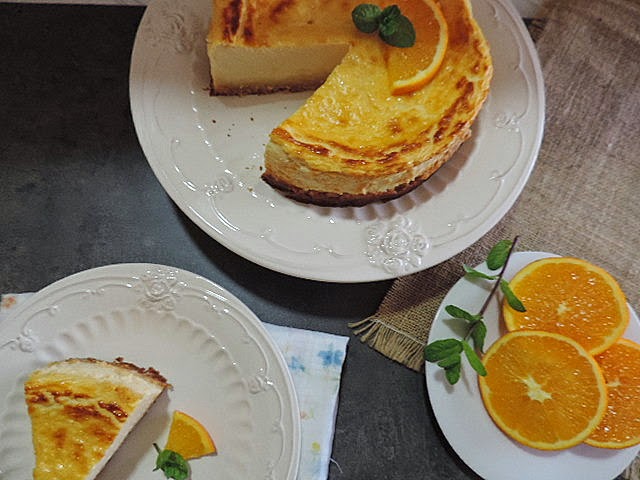 Nos preparamos para el fin de semana con una tentadora Tarta de queso con naranja.De nuevo una tarta de queso,pero en esta ocasión con un agradable sabor a naranja.