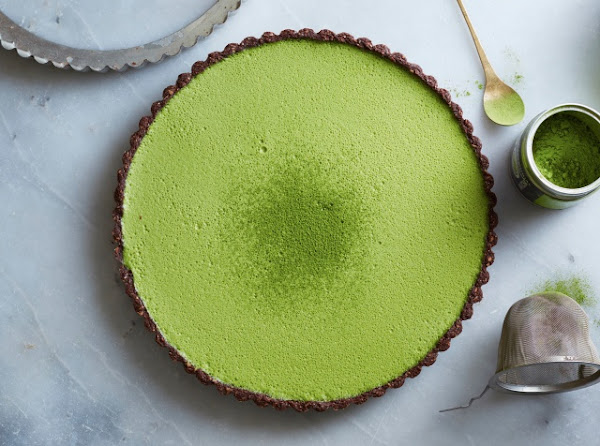 Vierte el relleno sobre la corteza de galletas y extiende uniformemente. Lleva la tarta de queso con té Matcha a la nevera durante 3 horas o hasta que cuaje