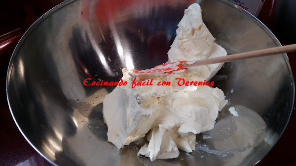 Por último se le añade la nata (crema de leche) a la mezcla y se sigue moviendo todo con la espátula, hasta obtener una crema lisa y sin ningún grumo.