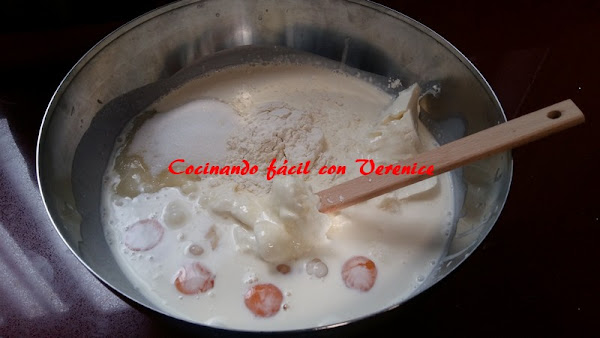 Se incorpora a ésta mezcla la harina (medida de una cuchara sopera, con la que está uniendo todos los ingredientes) y se sigue moviendo despacio, sin prisas.