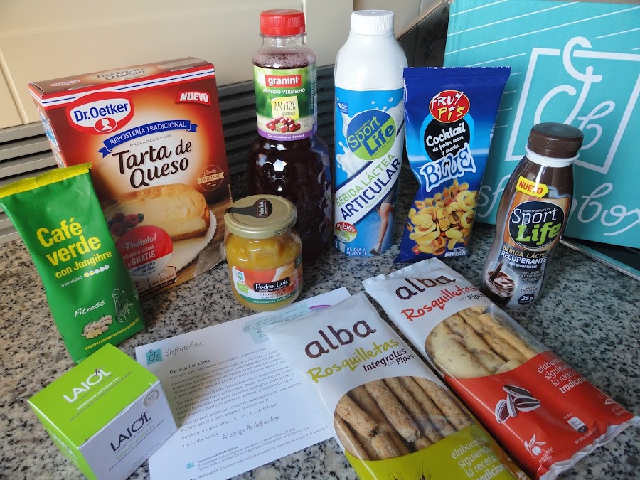 La caja disfrutabox de este mes la han titulado"De aquí al cielo", porque han preparado un grupo de productos que contribuyen a nuestro bienestar, porque cuidan nuestra salud, nuestro aspecto, nuestra alimentación, o como en el caso de esta tarta nos hacen compartir un delicioso postre. La caja incluye, además del preparado para la tarta: