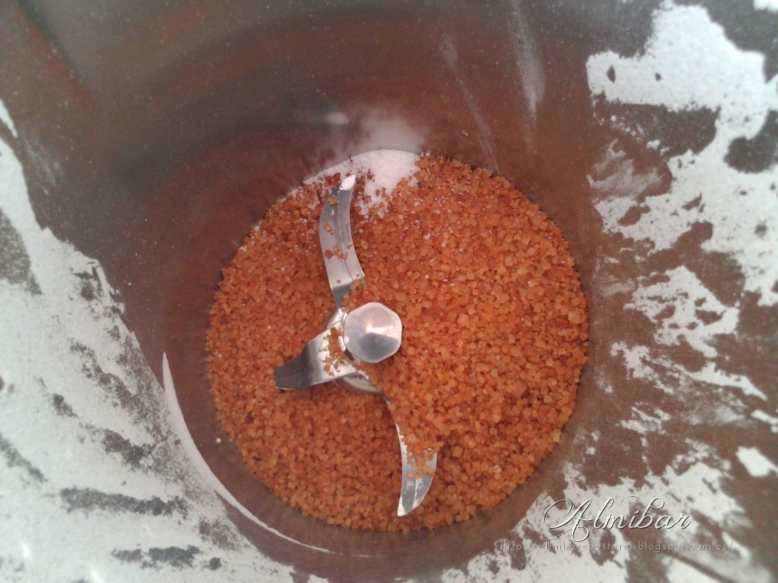 ...en un procesador de alimentos pulverizas los dos tipos de azúcar y la sal...