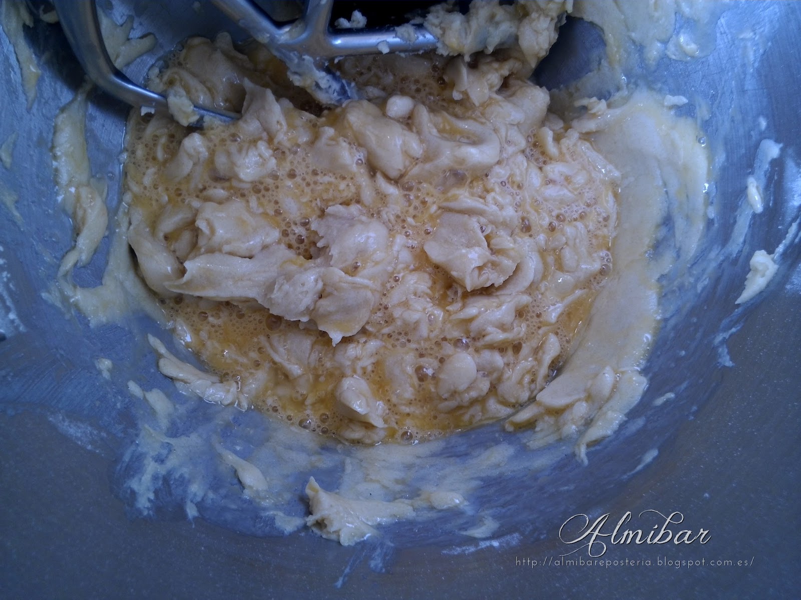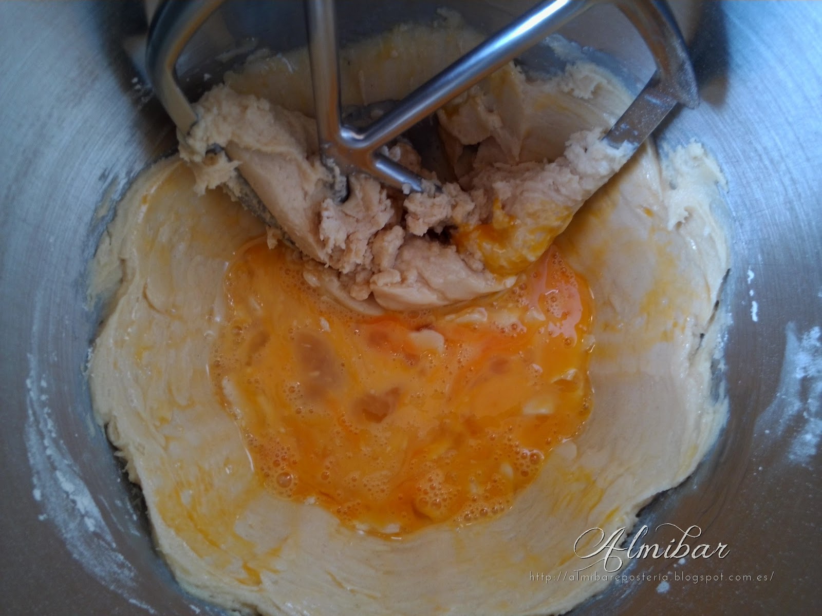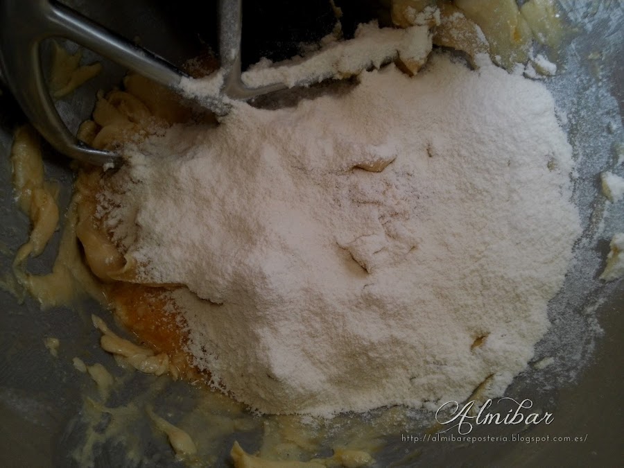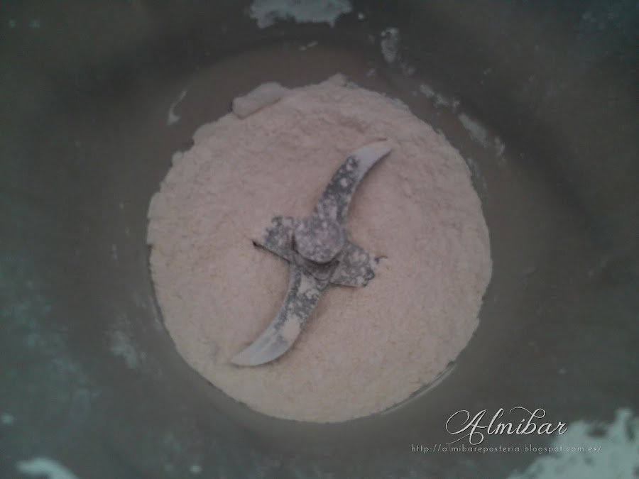 ...mezclas el polvo obtenido tamizado con la mantequilla a temperatura ambiente en una batidora eléctrica a velocidad media...