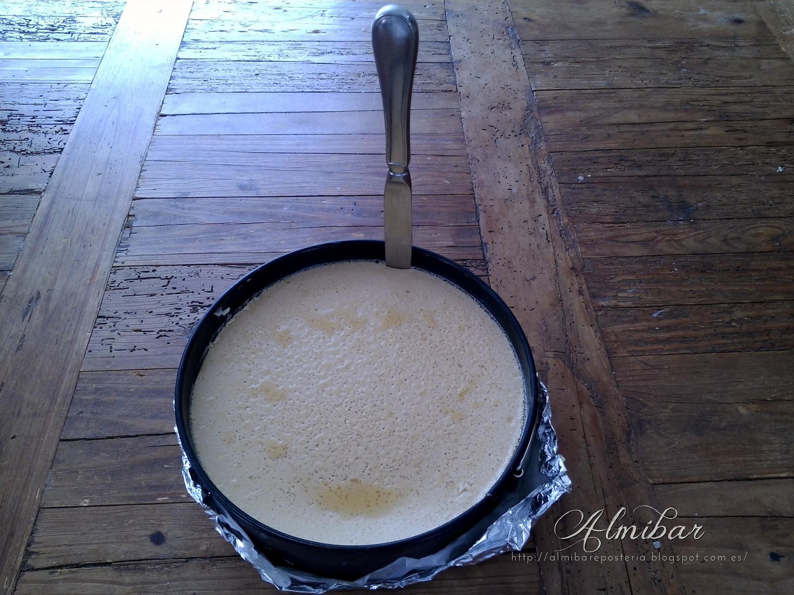 ...preparas la receta del cheesecake, obvias la base de galleta con mantequilla...