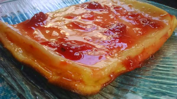 *Yo le di la vuelta, pero creo que la próxima vez la dejaré con el tostadito hacia arriba, para que la mermelada penetre más en la tarta*