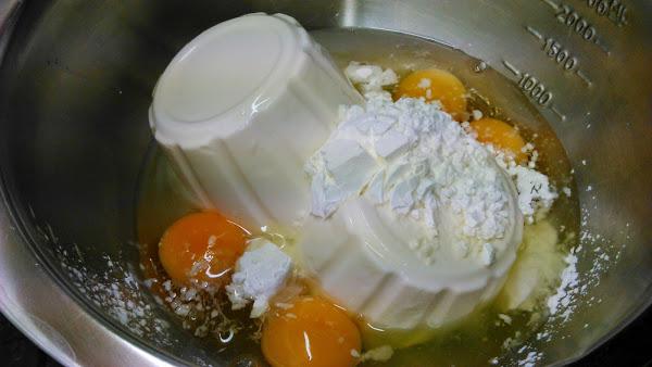 Esta tarta la he encontrado en el blog "El Comer y su Arte" y es muy fácil de realizar, ya que prácticamente es batir y al horno. He disminuido la cantidad de azúcar, porque quedó demasiado dulce para mi gusto, pero podemos hacerla de las dos formas, incluso sustituir el azúcar por edulcorante y que sea apta para diabéticos. Si vigilamos que la mantequilla de untar el molde, no lleve gluten, también es apta para celiacos.