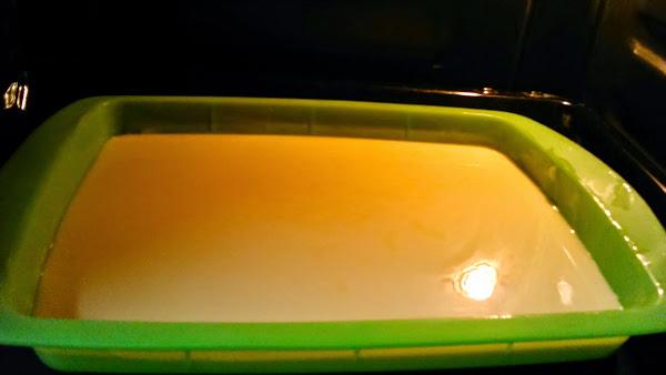 Introducimos en el horno precalentado a 180ºC, durante aproximádamente 30 minutos (según hornos) o hasta que empiece a dorarse. Podemos comprobar si está hecha, pinchando en el centro, si el cuchillo sale limpio, es que lo está.