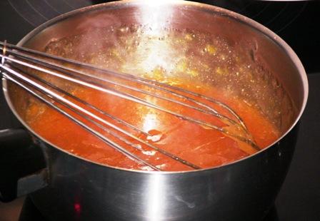 Luego ya solo nos queda remover la mezcla hasta un poco antes de que rompa a hervir, retiramos del fuego y dejamos enfriar un poco.