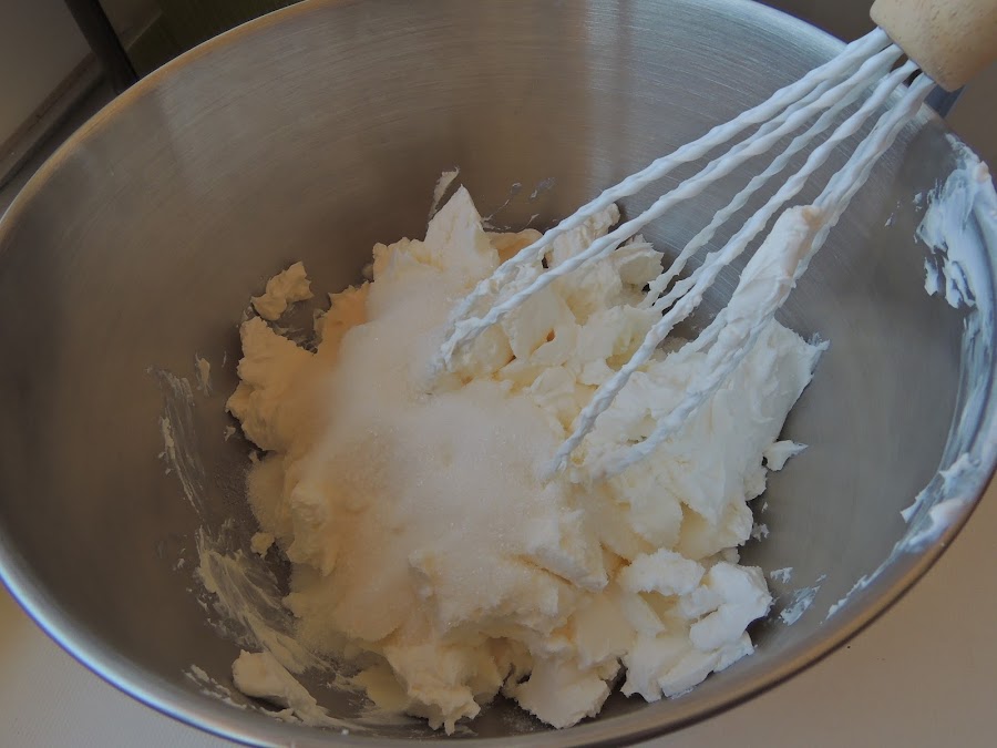 Batimos el queso con el azúcar blanco hasta que quede todo bien integrado.