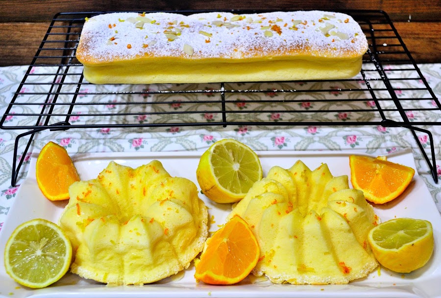 Hacía tiempo que había leído que la tarta de queso japonesa tiene una textura muy peculiar que combina de forma excepcional la textura de un tierno bizcocho, la de una tarta de queso y la de un solfee, una combinación sin duda maravillosa. No obstante, un fallo en el montado de las claras o un batido excesivo de la crema de queso para untar y todo se iba al traste. No sin cierto nerviosismo -pues no puedo permitirme hacer varias pruebas- me dispuse a hacerlo. Afortunadamente, el resultado fue satisfactorio y le di mi toque personal espolvoreando cada mini tarta con un poco de ralladura de cítricos, que a mi madre le encanta.