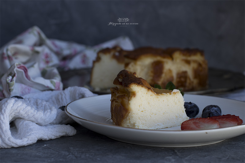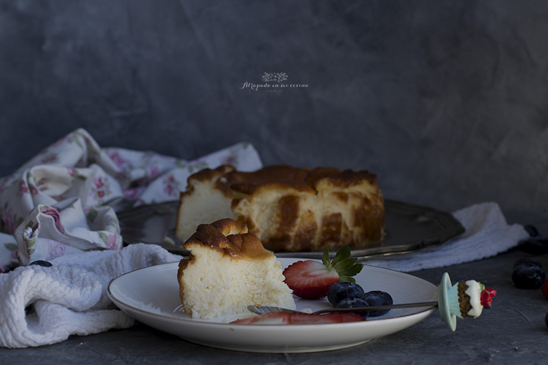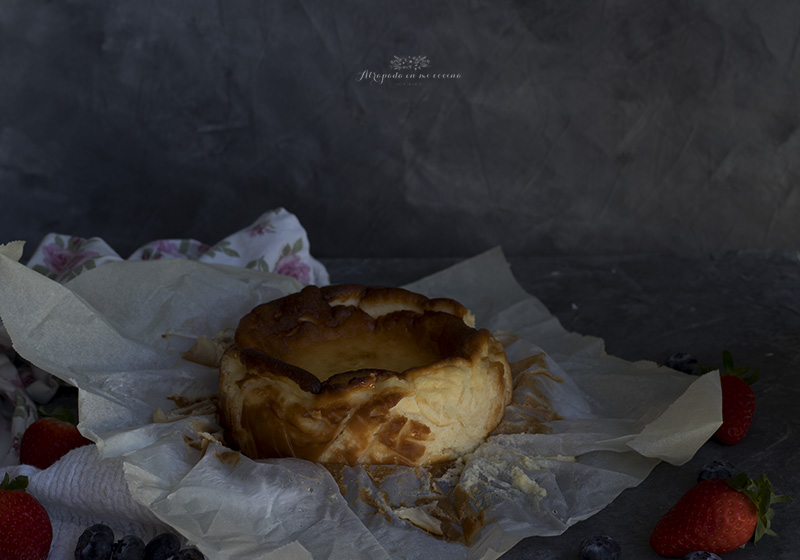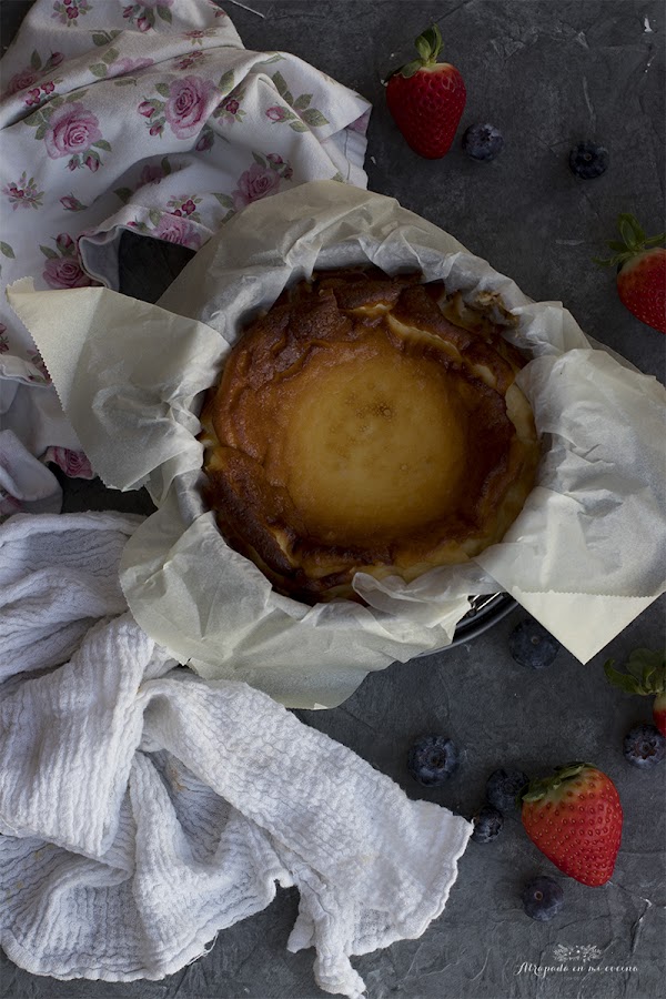 Se trata de una tarta de queso en estado puro, la tarta de queso por excelencia, sin base, sin cobertura, sólo tarta de queso. Su aspecto rústico no evoca a esas tartas perfectas de queso que podemos ver en muchas pastelería o blogs de cocina, pero, sin lugar a dudas, ahí reside el encanto de esta tarta, porque su sabor supera con creces todo tipo de florituras de otras tartas.