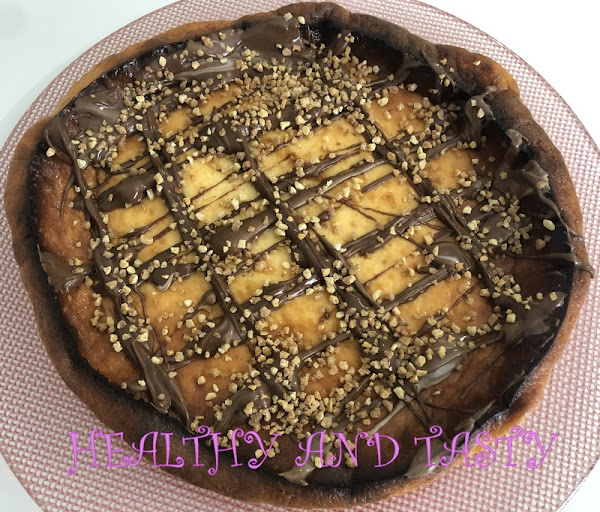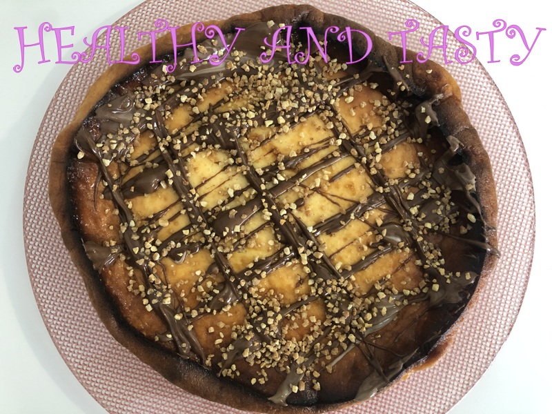 Podemos decorarla con Nocilla o Nutella derretida durante 1 minuto en el microondas y unas almendras crujientes, o con mermelada mezclada con una cucharada de agua. Pero no es necesario añadirle nada, ya que la tarta está buenísima por sí sola.