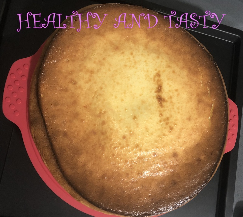 Vertemos la mezcla en el molde y horneamos durante 40-50 minutos con calor arriba y abajo a 200º. Hay que vigilar el horno para que no se queme. En mi horno se ha hecho en 40 minutos. Para saber si está la tarta lista, pinchamos una aguja en el centro y, si sale limpia, estará lista.