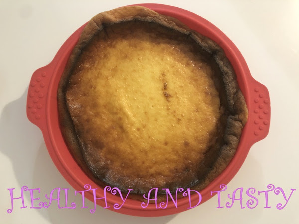 Engrasamos un molde redondo de silicona con un poco de aceite de girasol o forramos con papel de hornear un molde desmoldable o lo engrasamos también. Yo he usado un molde pequeño de silicona porque es muy fácil desmoldar.