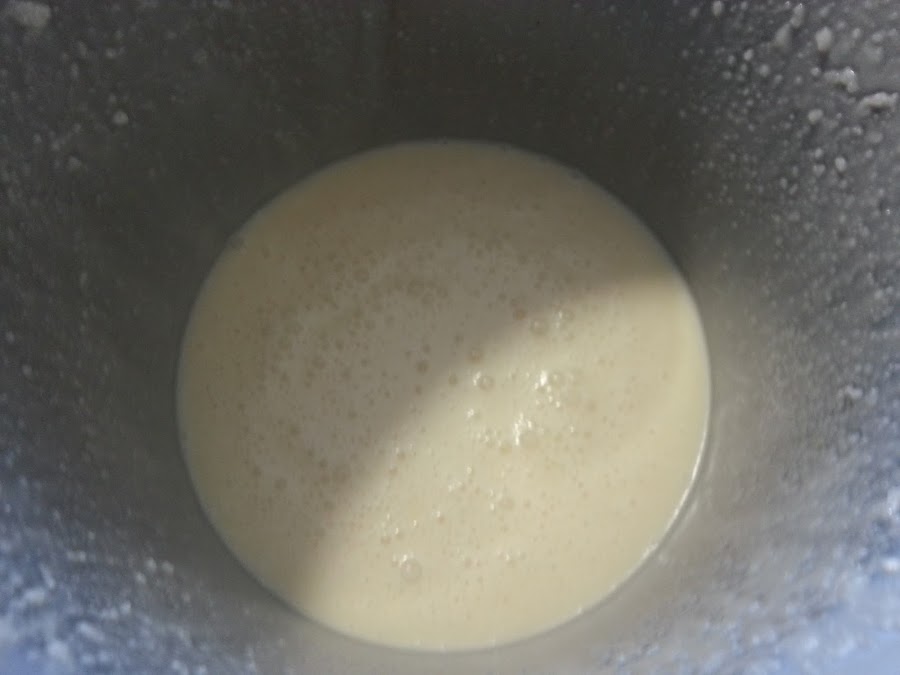 2. - Ponemos todos los ingredientes en un vaso batidor. Yo utilicé la termo, pero con una batidora cualquiera, suficiente para mezclar los ingredientes vale.