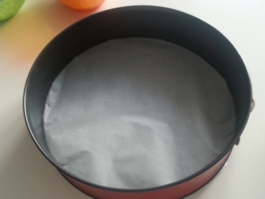 3. - untamos un molde con mantequilla o ponemos papel en el fondo, yo soy de las flojas y por no pringarme mucho las manos....pongo el papel.....