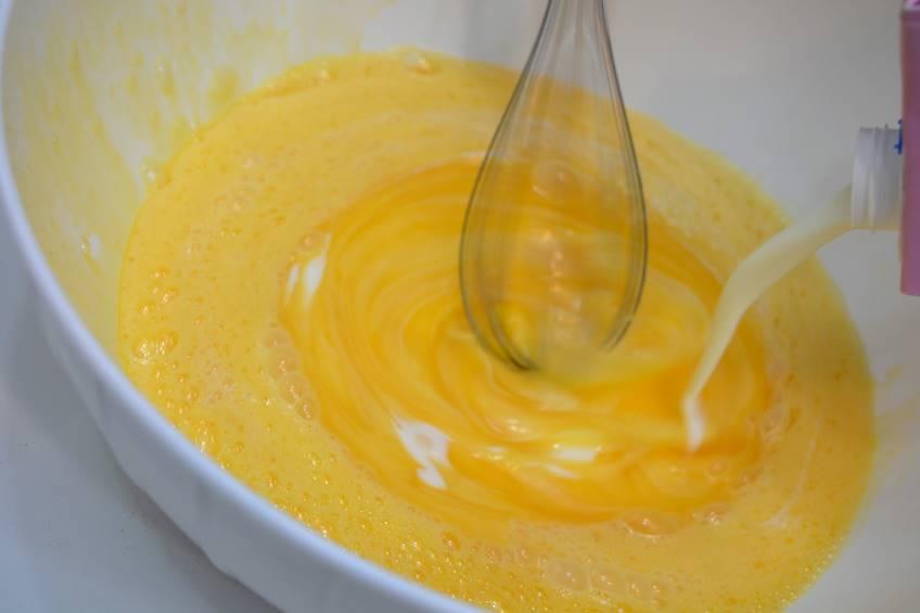 Paso 3 Mezclamos bien las dos cosas hasta que haya quedado una pasta y la ponemos en el molde extendiéndola lo más equitativamente posible por toda la base del molde. Luego metemos al congelador el molde durante 15 minutos para que la base quede más sólida. Paso 4 Es el turno de preparado de la mezcla de la tarta de queso mascarpone. Batimos bien los huevos y cuando los hayamos batido bien, ponemos el azúcar y continuamos batiendo. Cuando se hayan mezclado bien, vamos poniendo la nata (crema de leche) poco a poco mientras batimos.