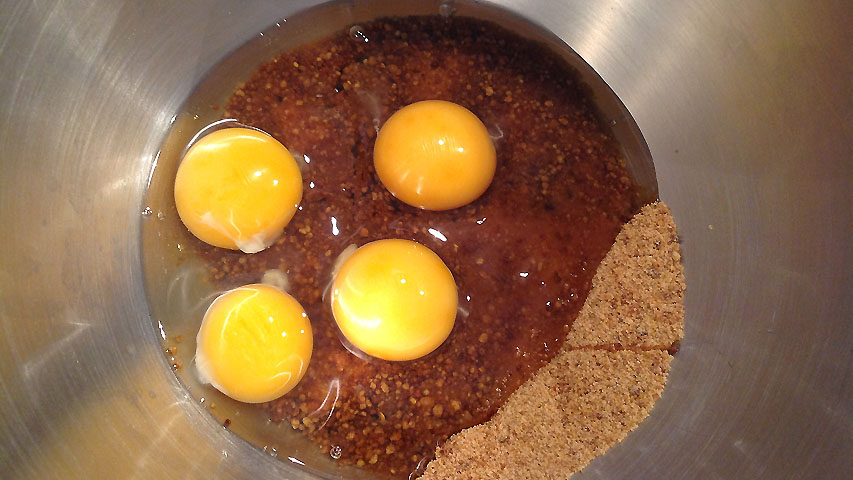 Casca 4 huevos sobre el azúcar y bate muy bien.