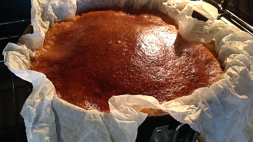Tras sacar la tarta del horno la dejo enfriar y después la meto en la nevera durante algunas horas -toda la noche- antes de consumirla.