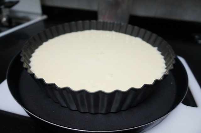 Cuando ya esté todo incorporado y empiece otra vez a hervir, lo retiramos del fuego. Sacamos el molde de la nevera y con cuidado iremos echando la crema.