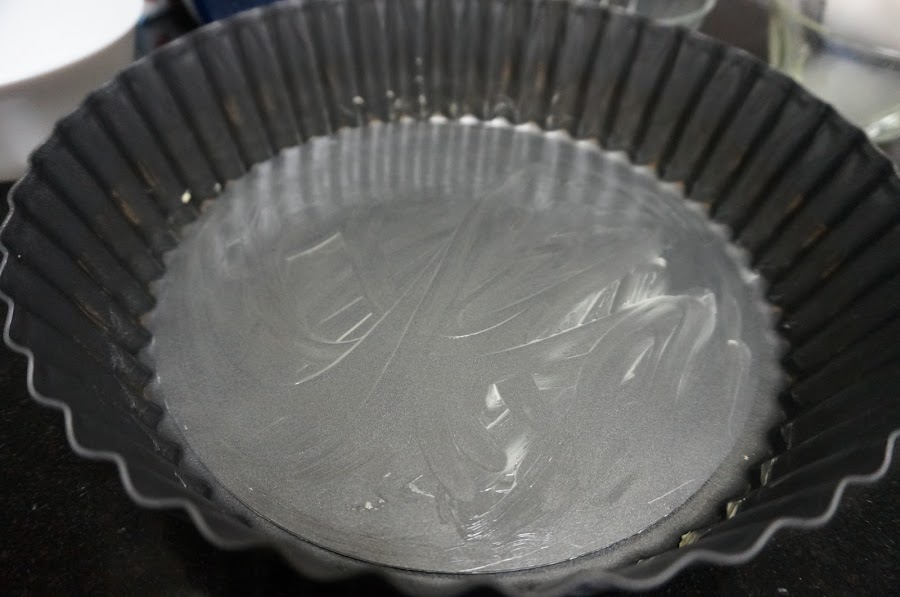 Cogemos un molde que tenga la base desmontable de 22-24 cm untaremos el molde con mantequilla por todo.