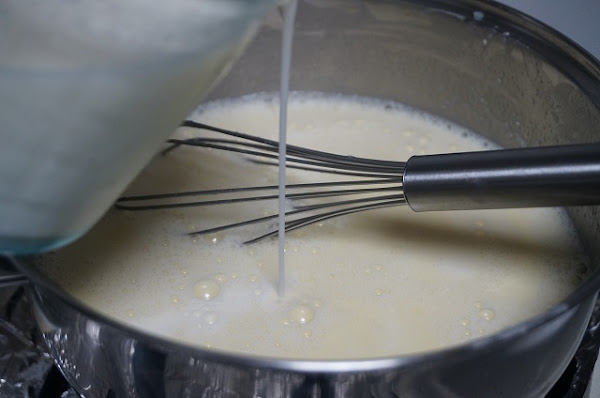 Cuando empiece a querer hervir lo que tenemos en el cazo iremos echando el vaso que tenemos de leche con la cuajada disuelta, no dejaremos de remover.