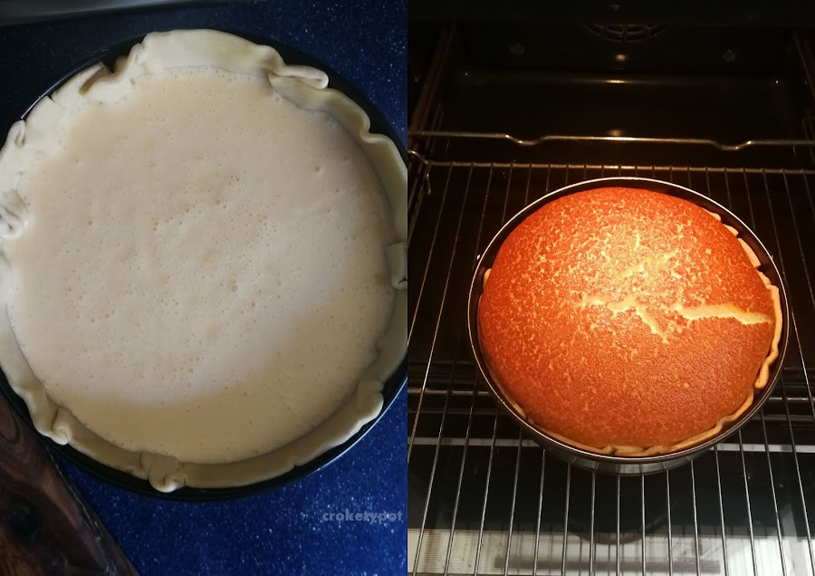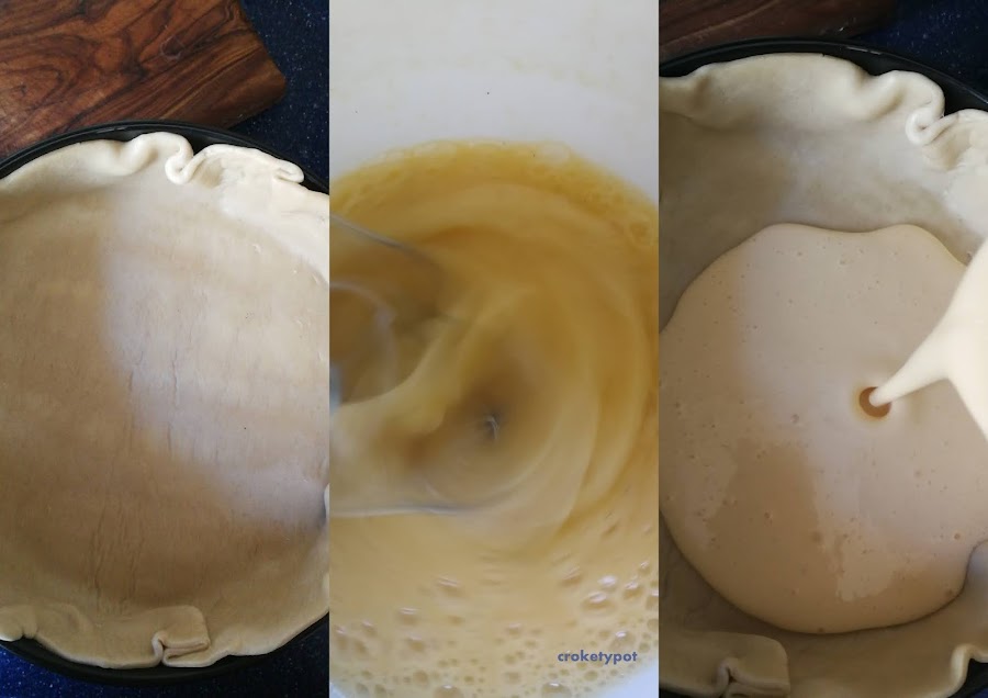 En un bol mezclamos los huevos, la nata (crema de leche), el queso quark, el azúcar, las natillas que hemos disuelto en el vaso de leche, la raspadura del limón que habremos lavado muy bien, y la raspadura de la vaina de vainilla. Lo batimos todo muy bien y lo ponemos sobre la masa quebrada para hornearla.