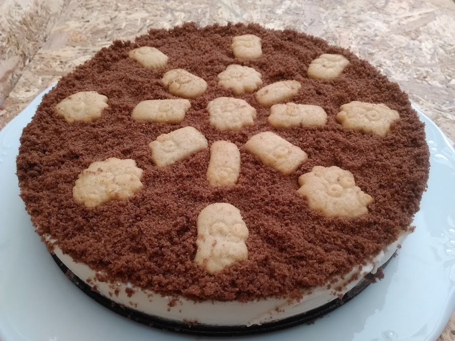 Pasado el tiempo, adornamos con las galletas trituradas reservadas anteriormente y las 17 galletas tal cual queda en la foto.